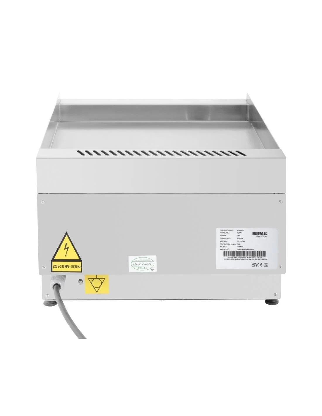 3 kW. Largeur : 400 mm. Assiette lisse. REMARQUE : Unité de comptoir uniquement. Soubassement vendu séparément.
