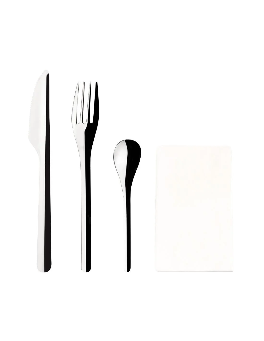 Ensemble composé d'une fourchette de table, d'un couteau de table, d'une cuillère à café et d'une serviette