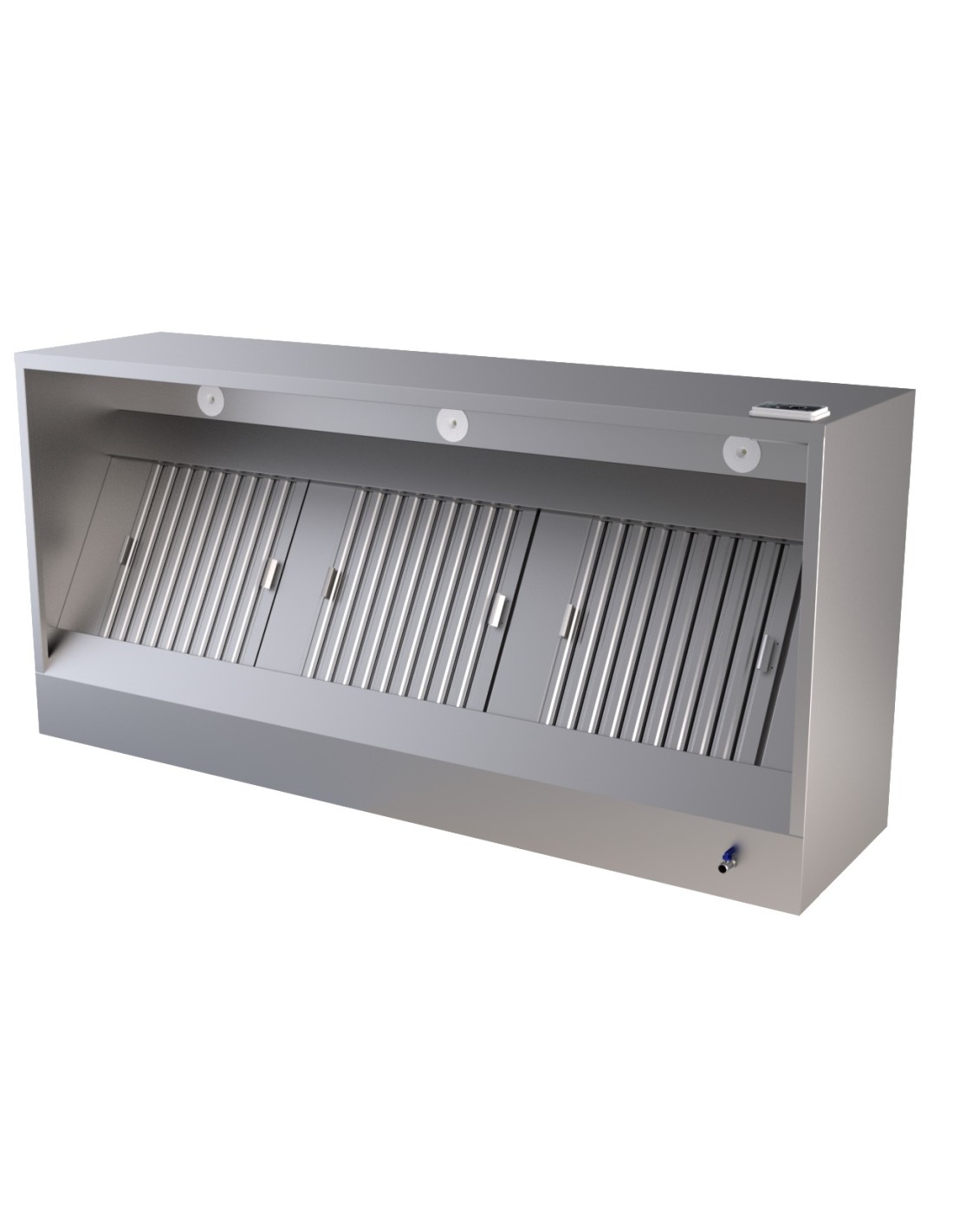 Hotte murale Modèle Boîte 2400 de Combisteel: extraction jusqu’à 2000 m³/h, filtres inox 495×495×25, acier 430, LED intégrée, 230V/50Hz, entretien facile; cuisine pro.