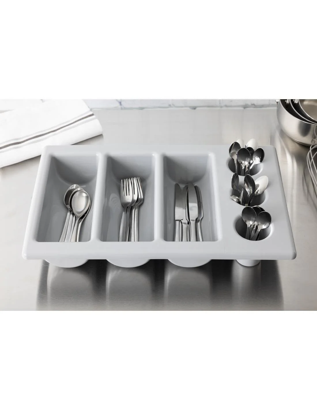 6 bacs. GN taille 1/1. Couleur: gris. Dimensions: 100(P) x 325(l) x 530(L)mm.