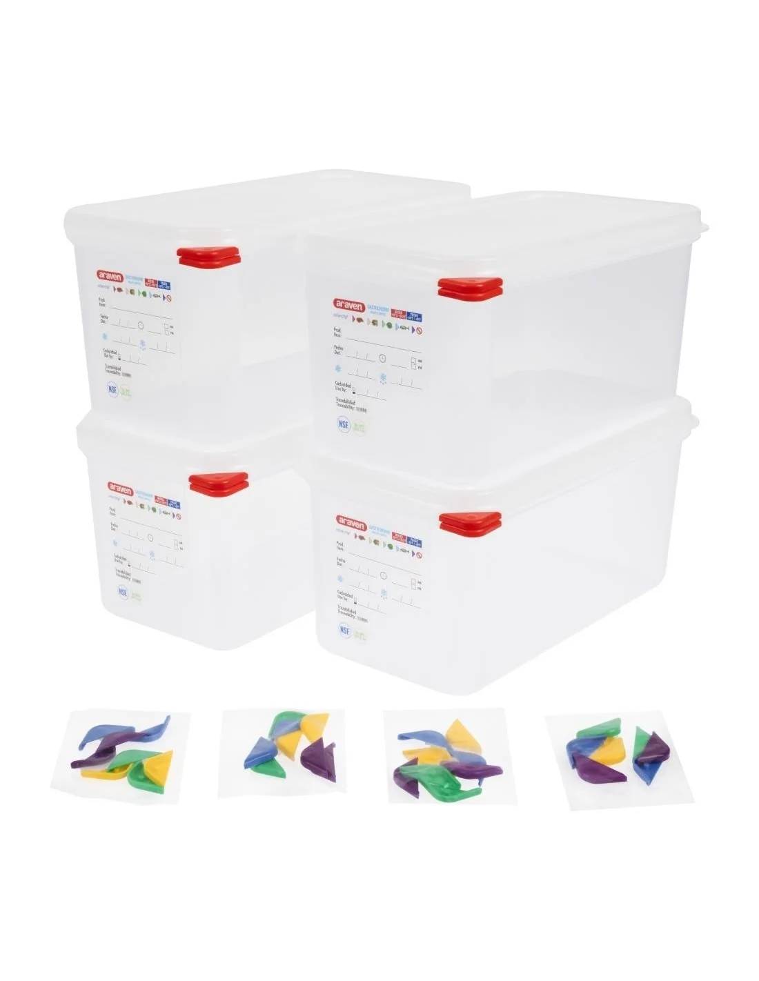 Vendues avec un ensemble de clips codés par couleur (rouge, jaune, vert et bleu).