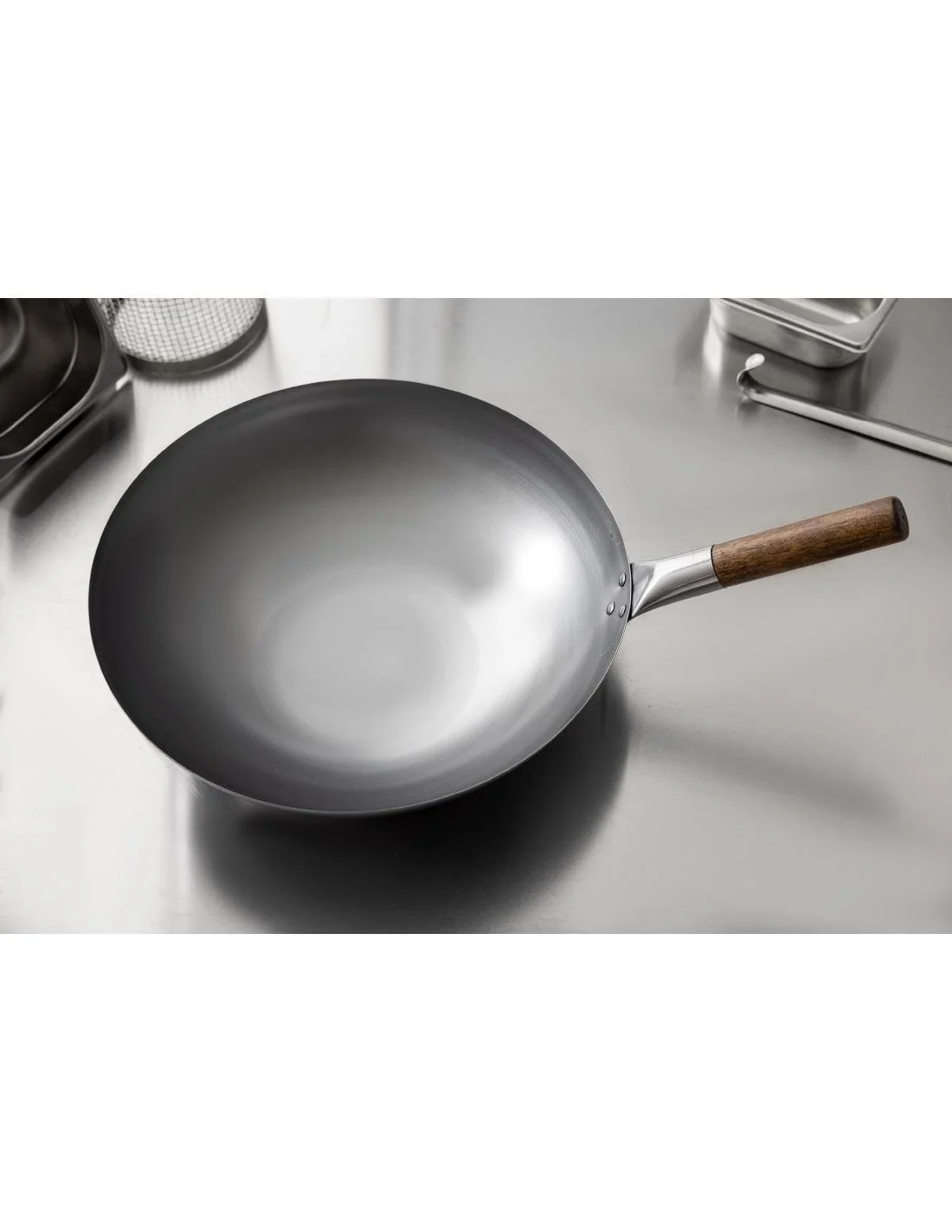 Long manche de 195mm pour tenir le wok d'une seule main