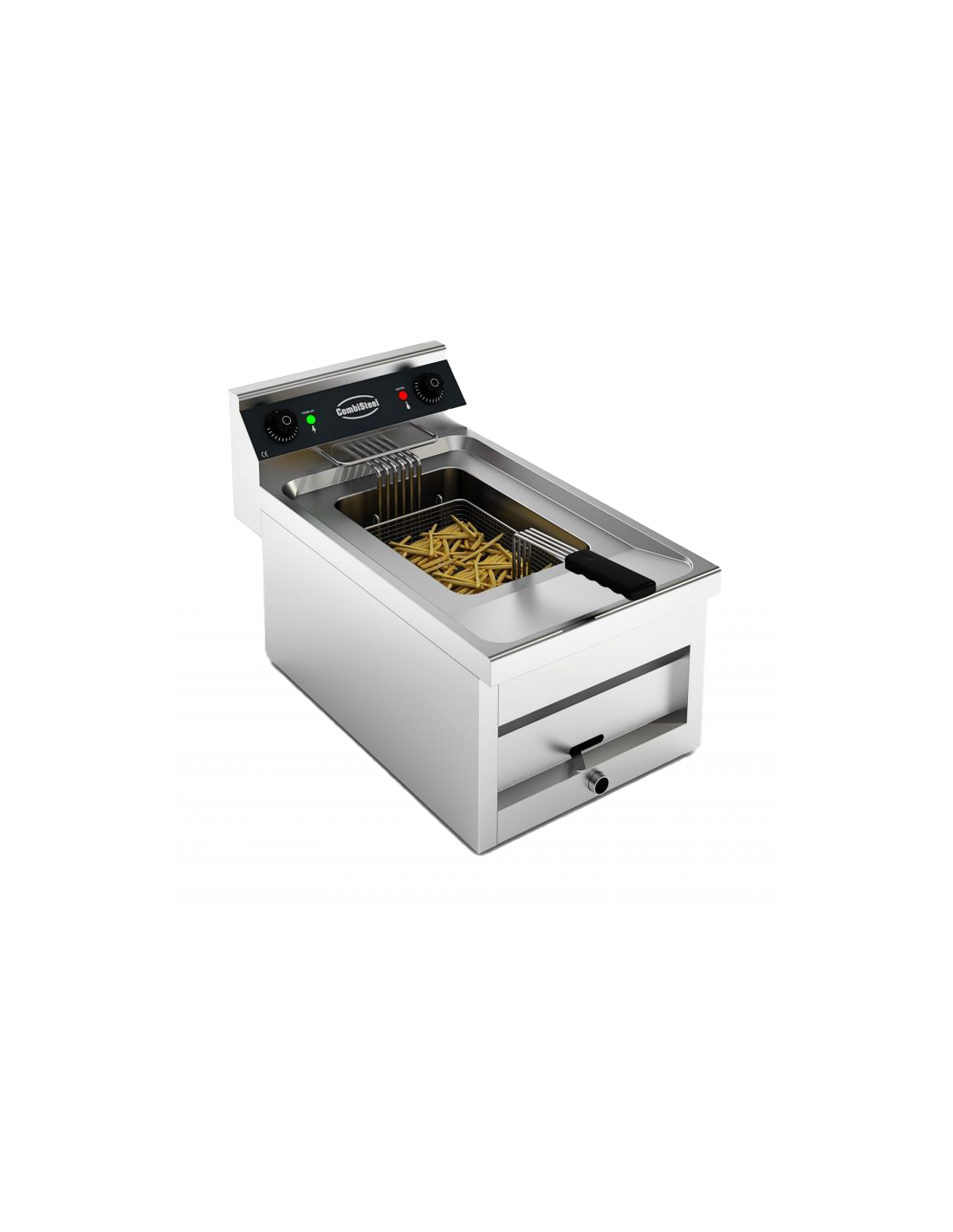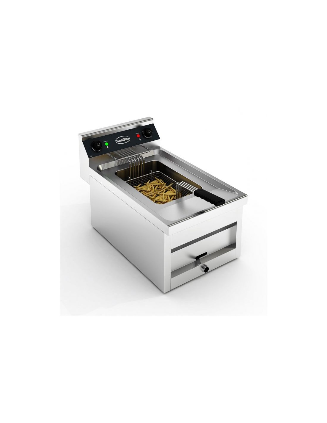 Cette friteuse électrique d’une capacité de 12 litres est idéale pour les cuisines professionnelles où la rapidité, la fiabilité et l’hygiène sont essentielles. Ce modèle compact de table est fabriqué en acier inoxydable de haute qualité et dispose d’éléments amovibles ainsi que d’une cuve à huile profonde sans soudure, facilitant ainsi le nettoyage. Grâce à l’élément chauffant puissant de 9 kW, l’huile chauffe rapidement et maintient une température constante pendant la friture. La température est réglable avec précision de 0°C à 180°C et s’éteint automatiquement dès que la température maximale est atteinte. Livrée avec panier à friture et couvercle. Dimensions : 400x700x328 mm (LxPxH) – Tension : 400V – Puissance : 9 kW – Capacité : 12 litres – Poids : 18 kg