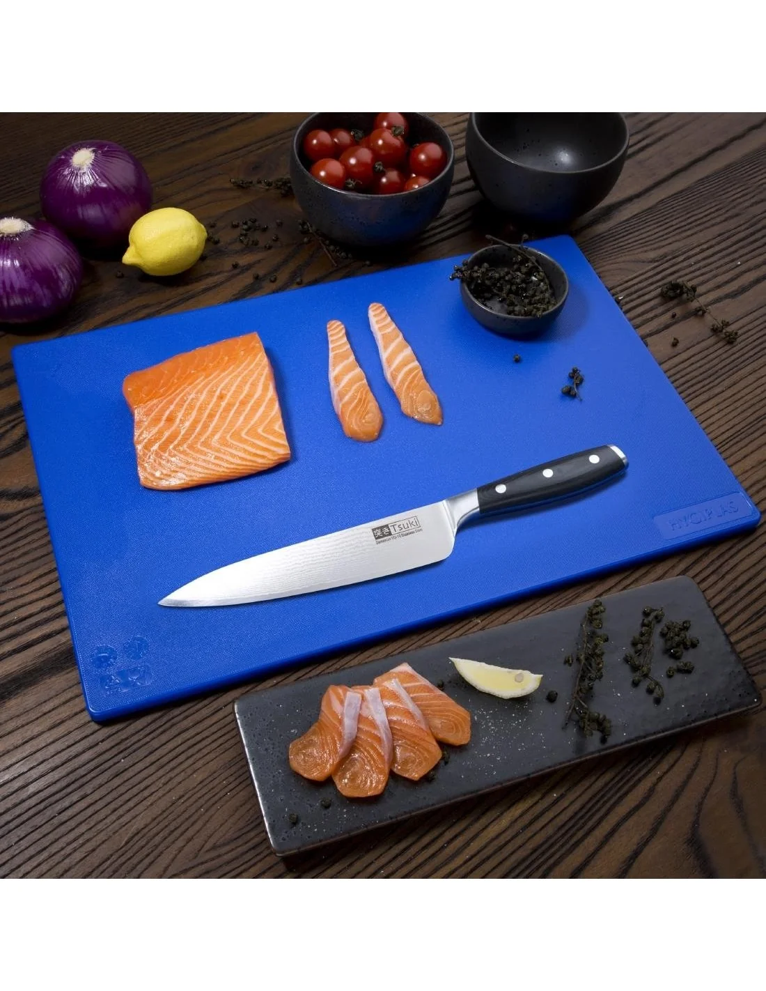 J257 | Standard - 10(H) x 450(L) x 300(P)mm. Polyéthylène basse densité. Bleu (poisson et crustacés).