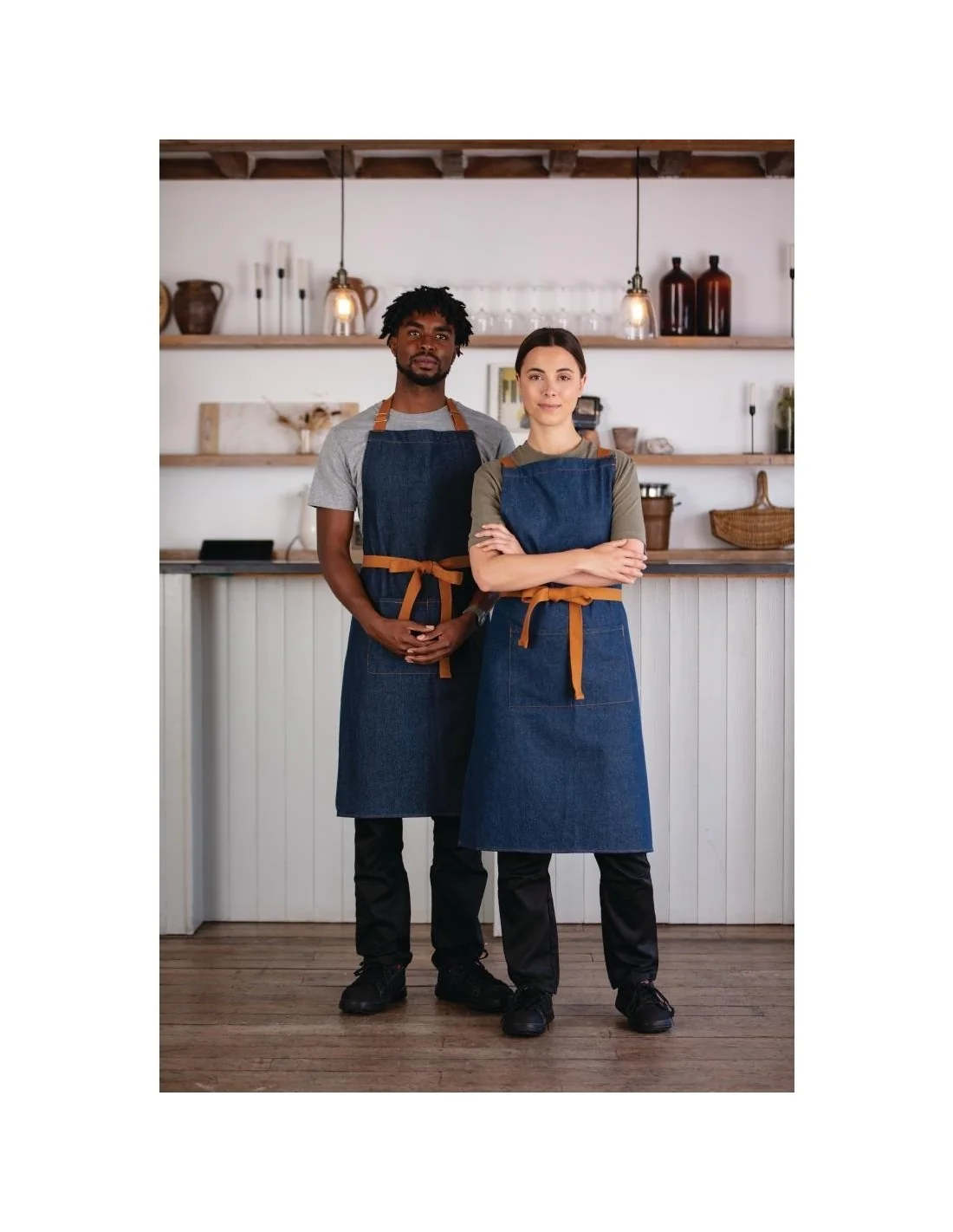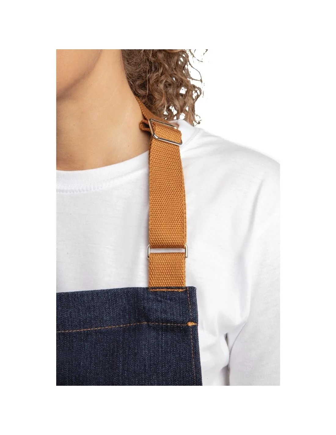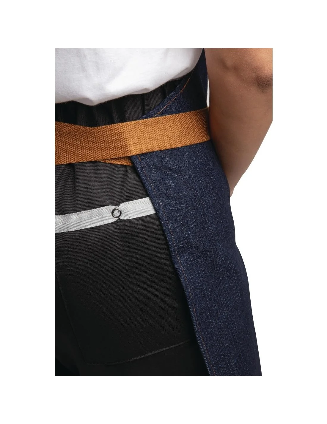 Tablier moderne denim bleu et ceinture ocre